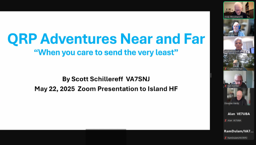 On May 22nd, Scott Schillereff VA7SNJ made a terrific presentation on Zoom titled “QRP Adventures Near and Far” Eleven IslandHF members took the opportunity to watch Scott tell them about not only his adventures but also how puts together an amazing kit of homemade QRP components to support his IC-705 while adventuring.